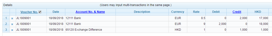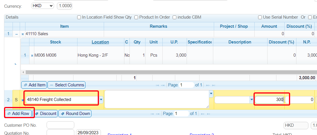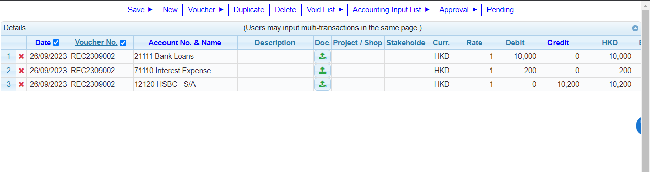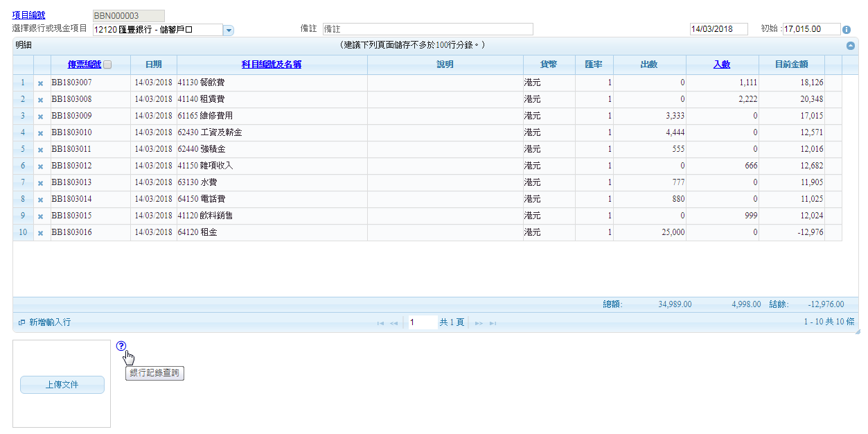 在發票扣減按金:除了發票原有資料外,新增一行,科目選客戶按金,金額輸入扣減按金的金額,需要輸入負數以扣減。