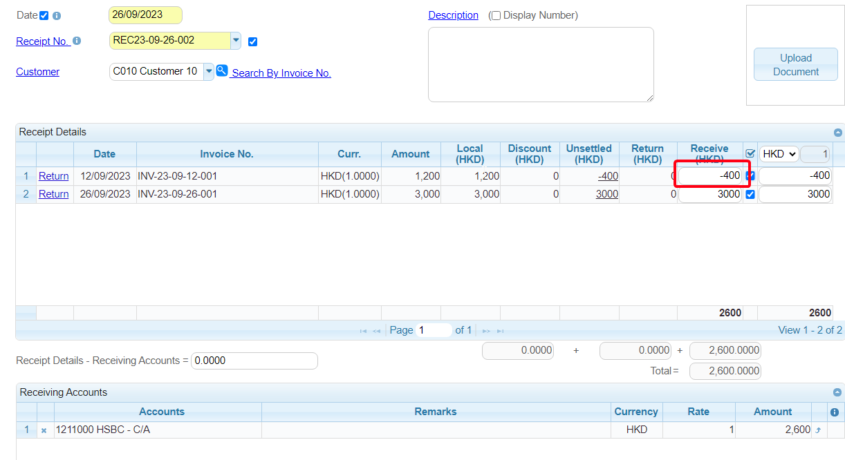 2. 如你的客戶給你按金的時候,是按照特定發票收取並扣減按金,請參考以下步驟:
